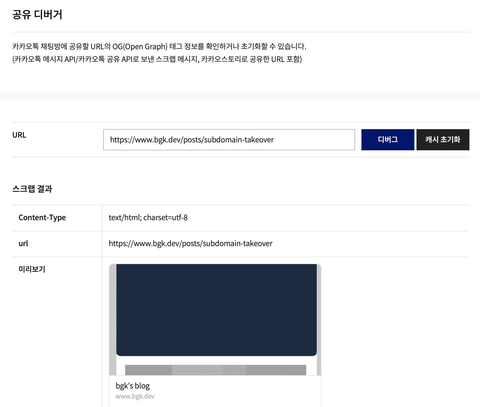 친구한테 블로그 포스팅을 공유하는 과정에서 미리보기 이미지가 맘에 들지 않아 이미지를 수정하고 다시 링크 공유했음에도 여전히 이전 이미지가 나타나는 문제가 발생했다.
