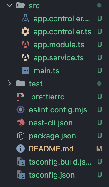 - 레포지토리를 만들때 README.md를 이미 만들어놔서 그냥 삭제하고 실행했다 (이미 만들어져 있는 README.md가 있으면 nest new . 실패)